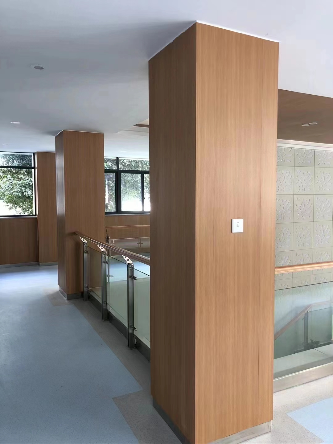 關(guān)于內(nèi)墻裝飾,現(xiàn)在越來越多的傾向金屬內(nèi)墻裝飾,金屬內(nèi)墻按工藝分可分為彩涂板跟覆膜板,按材質(zhì)分彩涂板又分為彩鋁板、彩鋼板、彩涂不銹鋼板;覆膜板又分為覆膜鋼板、覆膜鋁板、覆膜不銹鋼板等。彩涂板和覆膜板由于其質(zhì)輕、抗腐蝕較好,因此現(xiàn)在越來越被廣泛使用。尤以直木紋更為突出。