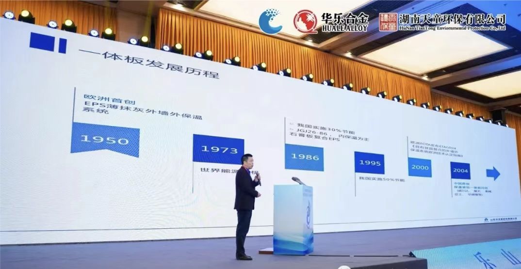 大會中,山東沃豐新材料科技有限公司總經理周偉介紹了不銹鋼墻面板(幕墻板)的應用普及趨勢與工程建成案例。